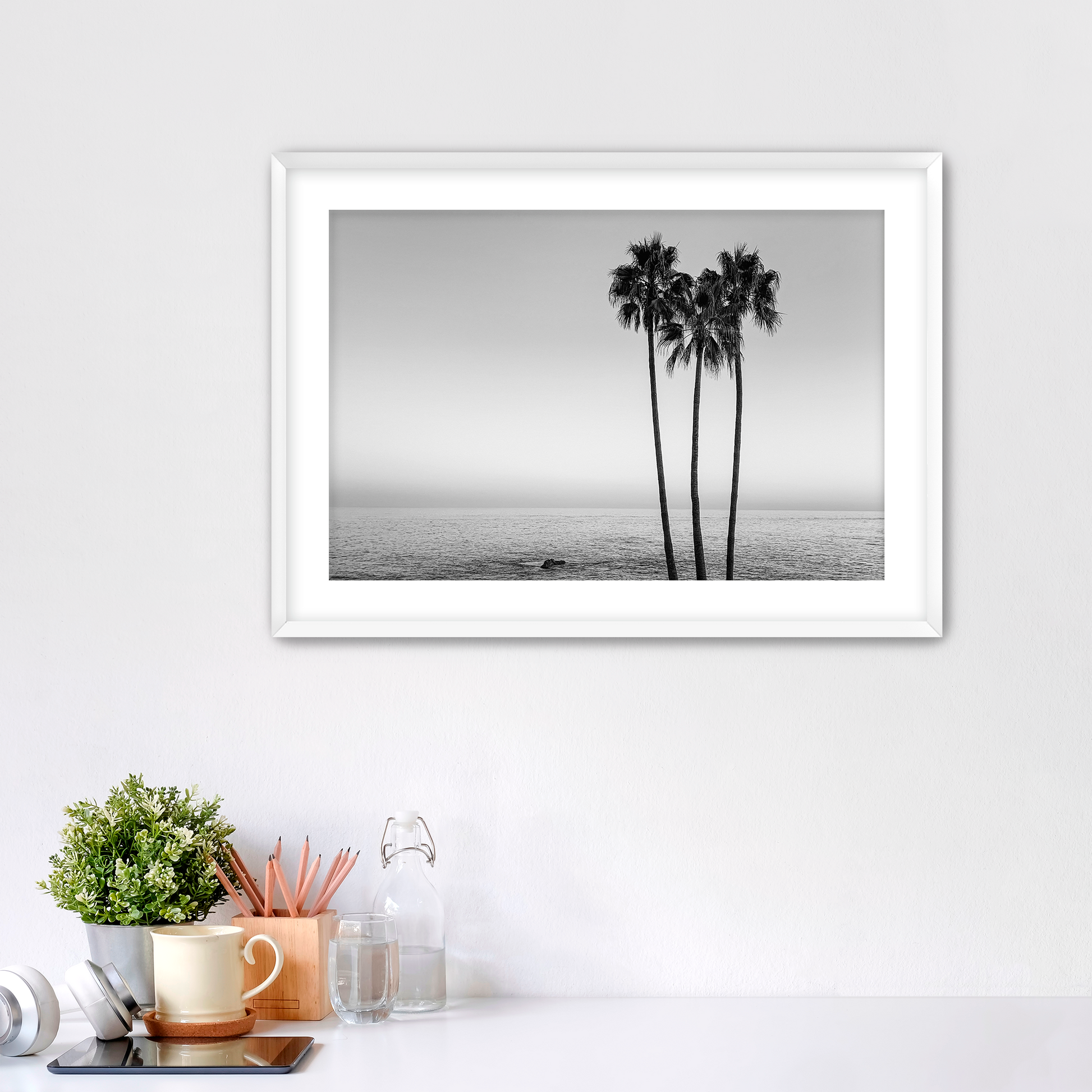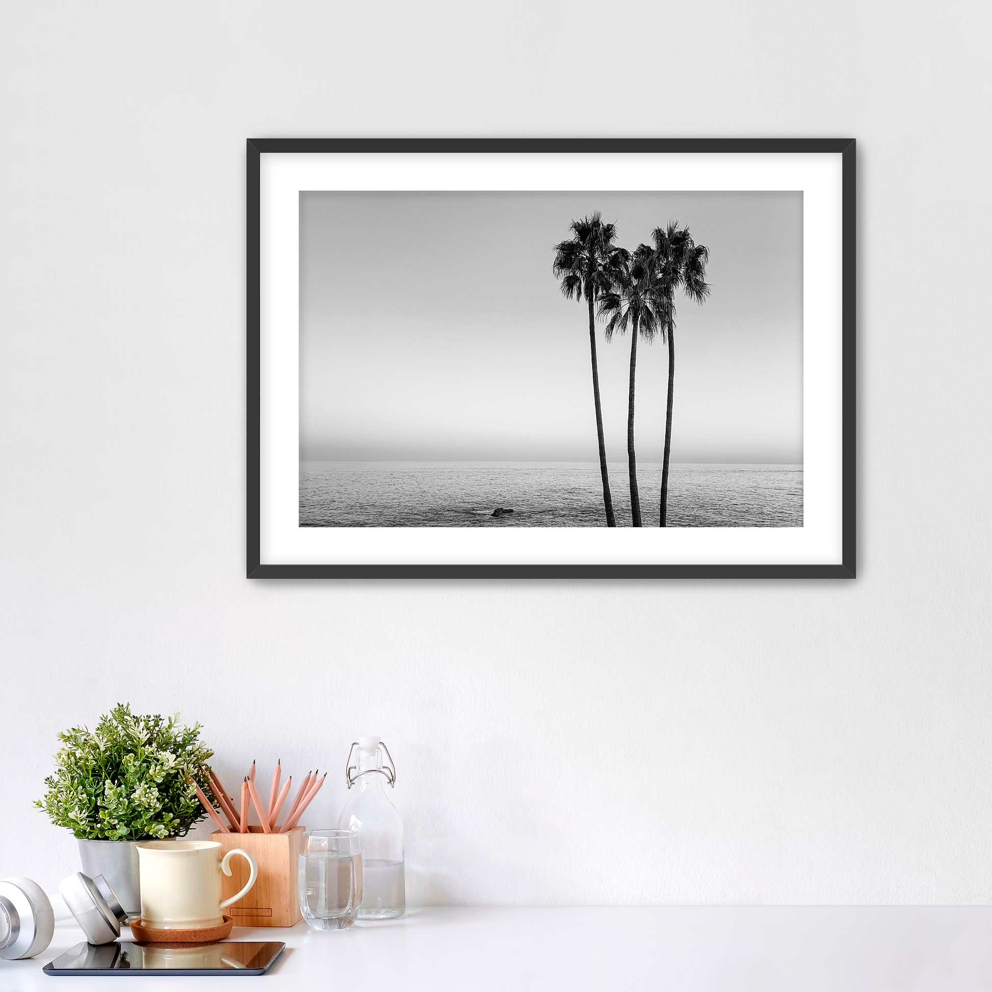 Black & White Coastal Palm Tree Wall Art | Fine Art Photography Print