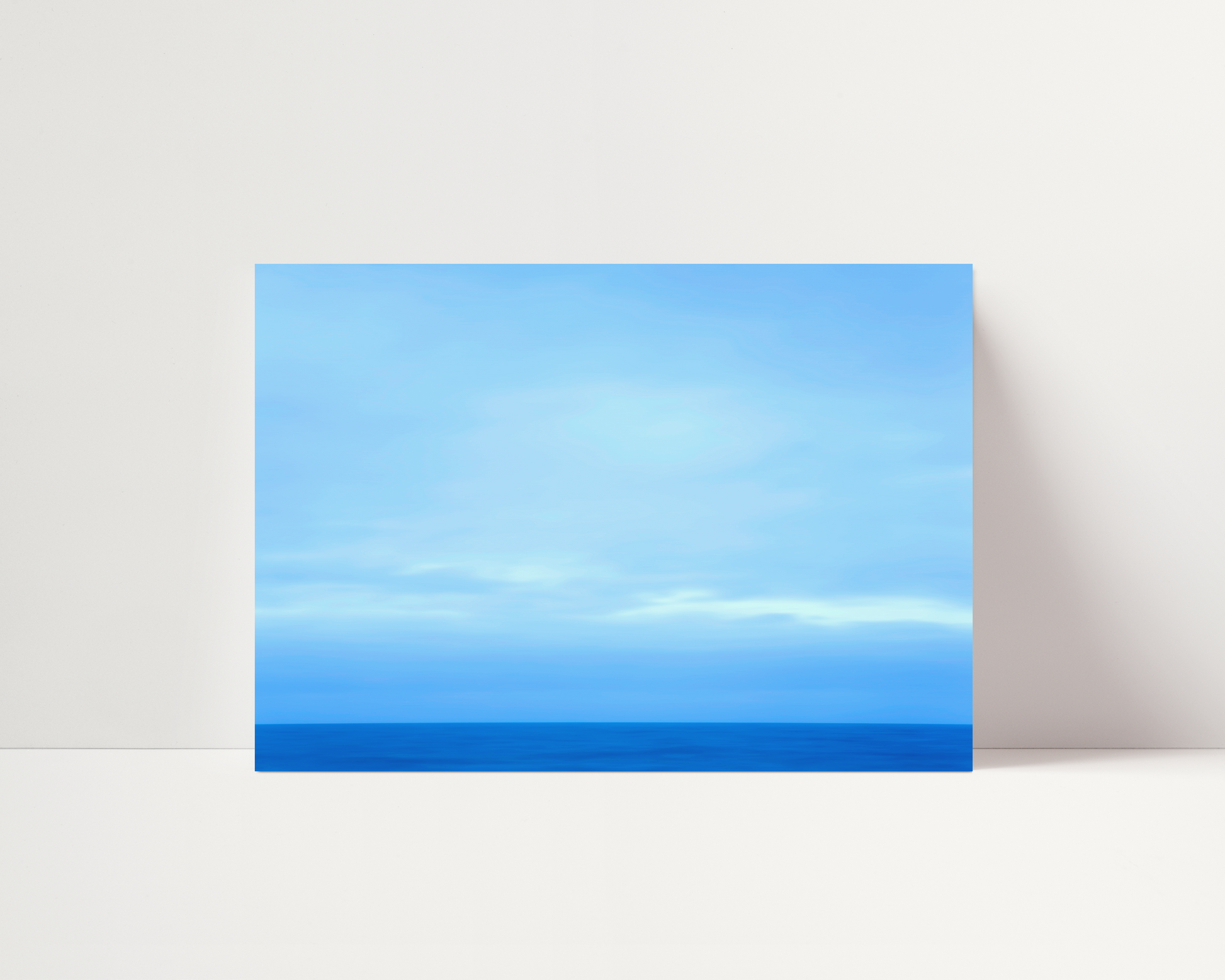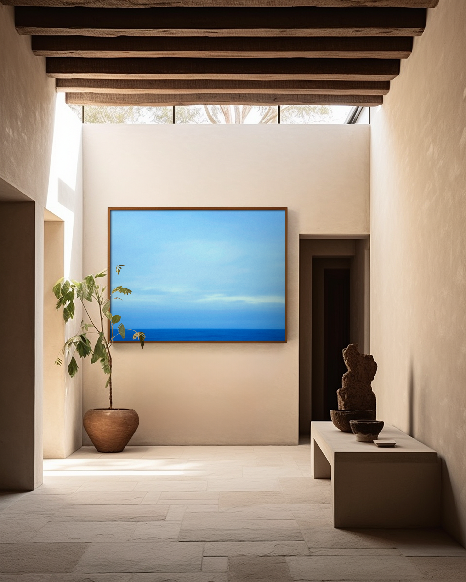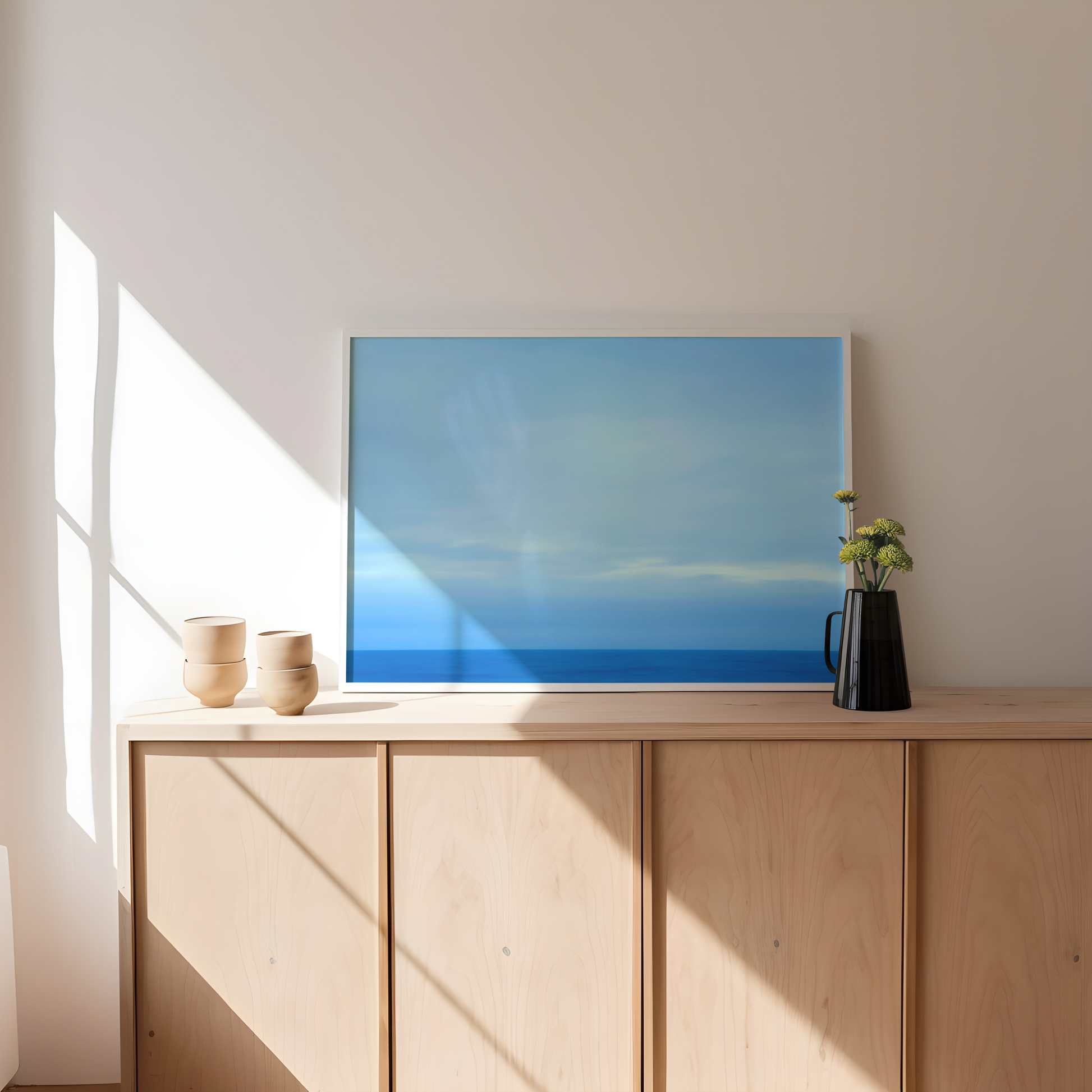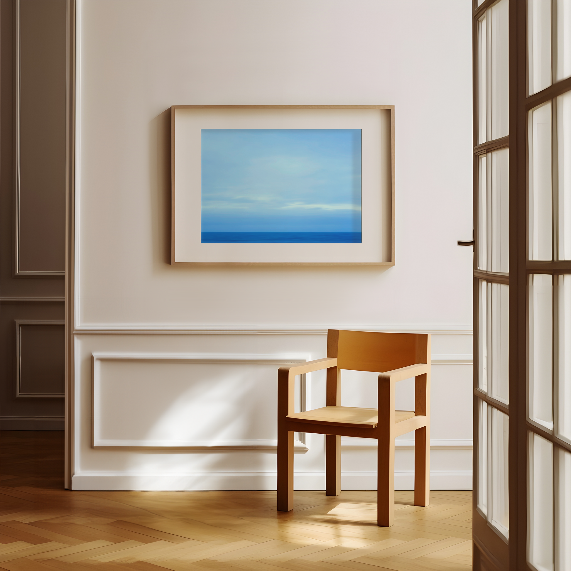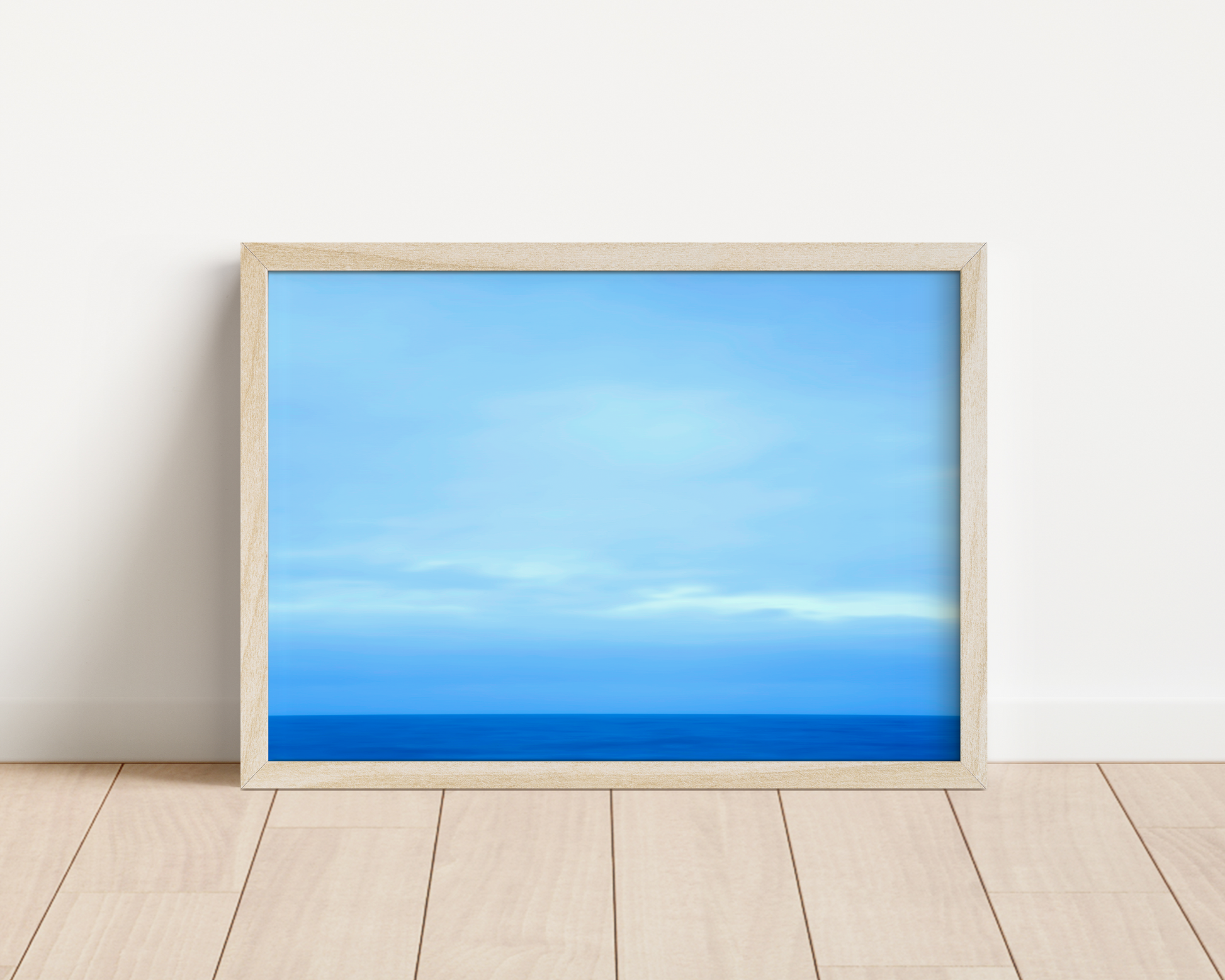 "Pacific Blue No. 4" captures the tranquil meeting of sky and sea in a minimalist composition that evokes calm and contemplation. The soft gradations of blue—from the deep horizon to the pale, cloud-brushed sky—create a meditative balance of color and light. This fine art photograph invites the viewer to pause and breathe, reflecting the serene rhythm of the Pacific itself. Perfect for coastal-inspired interiors, it brings a sense of openness, peace, and stillness to any space.