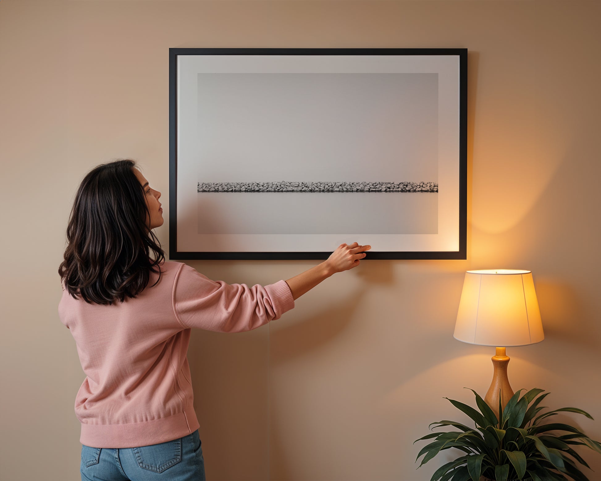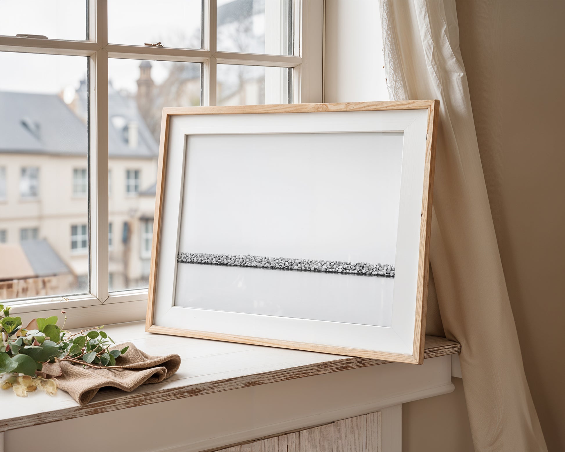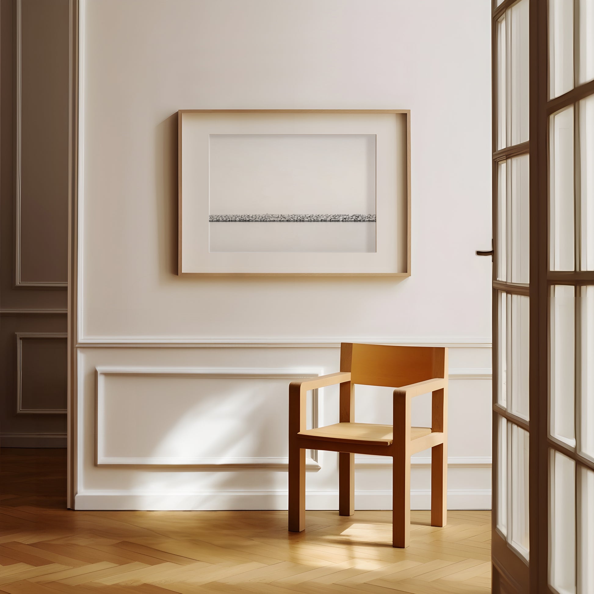 Immerse yourself in the quiet geometry of coast and stone with "Jetty No. 01," a fine art minimalist composition that celebrates balance, texture, and space. A delicate horizon of carefully arranged rocks stretches across a sea of stillness, softened by light and rendered in elegant black and white. The simplicity of form and contrast creates a contemplative atmosphere—evoking calm, order, and timeless beauty.