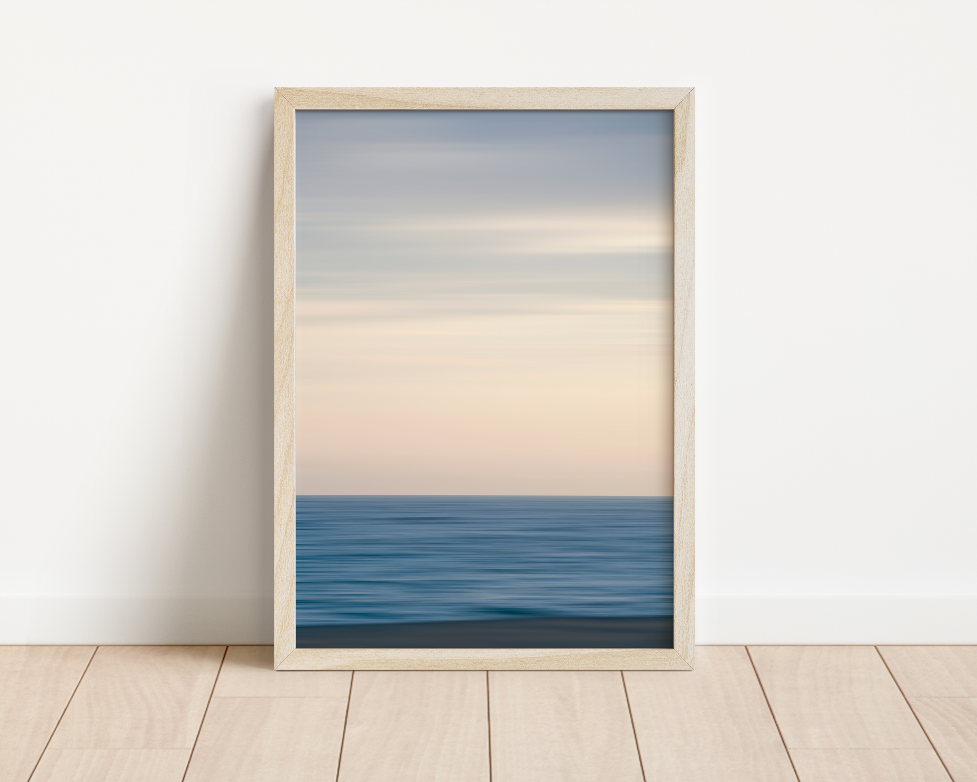 Immerse yourself in the serene simplicity of the sea with "Pacific Blue No. 01," a fine art abstract that captures the quiet rhythm of ocean and sky. With soft, blended tones of deep blue and warm coastal light, this minimalistic composition evokes a sense of calm, space, and timeless elegance.