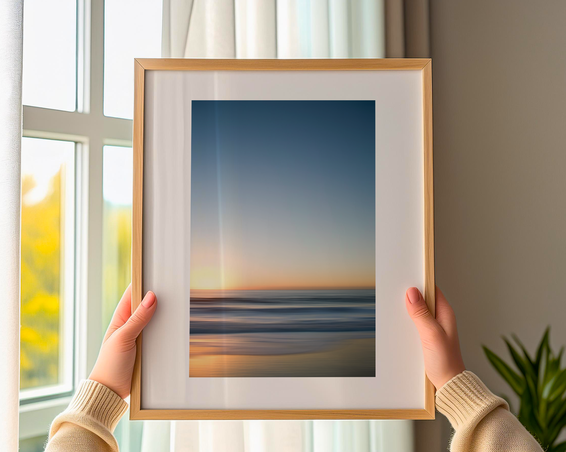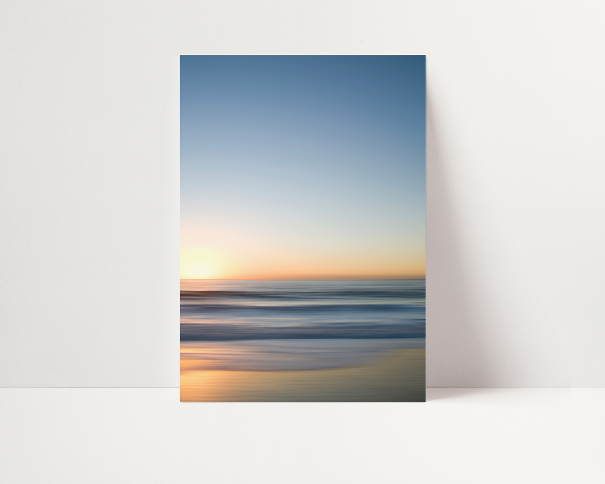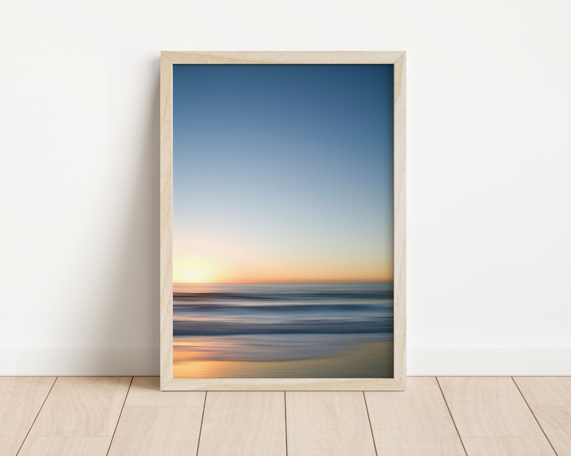 Immerse yourself in the gentle rhythm of the sea with "Pacific Blue No. 03," a minimalist seascape that blends the soft glow of a setting sun with the calm flow of ocean waves. Subtle horizontal motion creates an abstract impression of horizon, light, and tide, evoking a sense of timeless serenity.